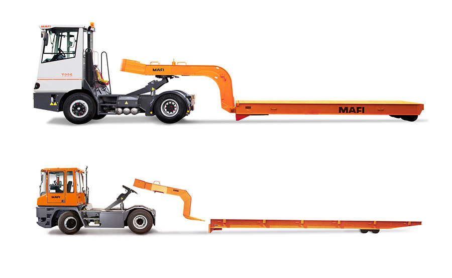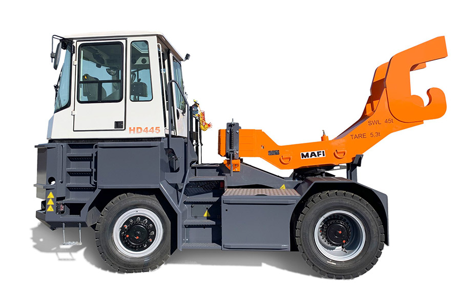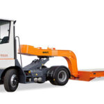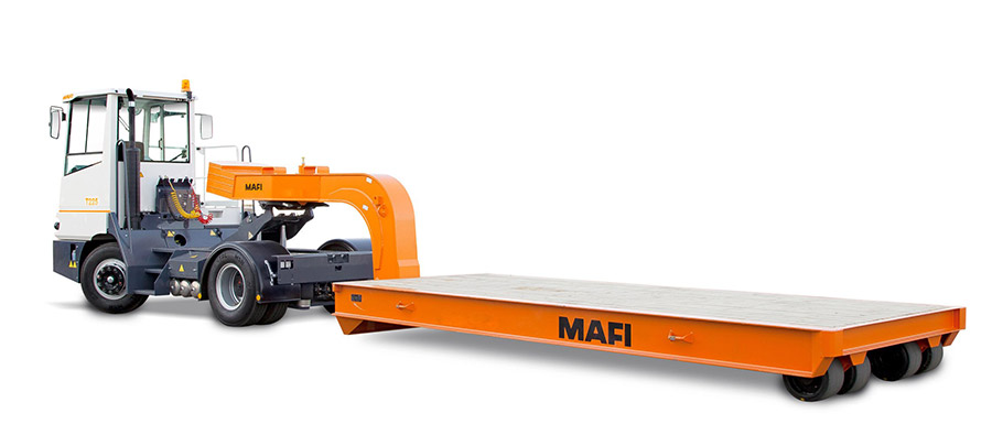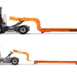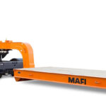 A MAFI gooseneck hitch for tractors is used to move roll/cargo trailers, usually with a standard fifth wheel coupling or with a fifth wheel to gooseneck adapter. A detachable gooseneck can be mounted on the tractor as needed, or fixed versions are built into a fixed gooseneck trailer. A detachable gooseneck is selected after deciding the fifth wheel load of the tractor. MAFI’s Model SH 36 gooseneck is rated at 36,000 kg and the Model SH 45 is 45,000 kg. These maximum load capacities allow gooseneck trailer weight limits of over 200 tons. The nose of the gooseneck trailer hitch is inserted into the coupling tunnel on the trailer and locks automatically when it’s lifted, ensuring safe transport. When moving a gooseneck trailer with tractors, always consider the gooseneck trailer swing clearance. To park the gooseneck, MAFI has a specially designed park box available. The gooseneck can be safely stored when it’s not needed, freeing the tractor for other tasks.