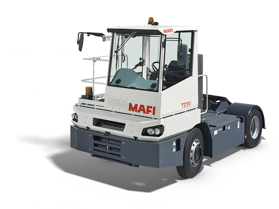 MAFI designed the T 230 F fixed fifth wheel shunt truck as an economical terminal tractor for use in seaports. In many of these applications, unnecessary optional extras can be eliminated, lowering cost and complexity. Designed for moving containers on a trailer chassis that generally remains attached to the heavy-duty tractor truck, the T 230 F has an uncomplicated, fixed fifth wheel that provides significant savings in cost and maintenance. If you’re looking for a shunt truck, but don’t require a lot of added features, the simple, rugged T 230 F can handle loads up to 90 tons making it a most useful and economical heavy-duty tractor truck.