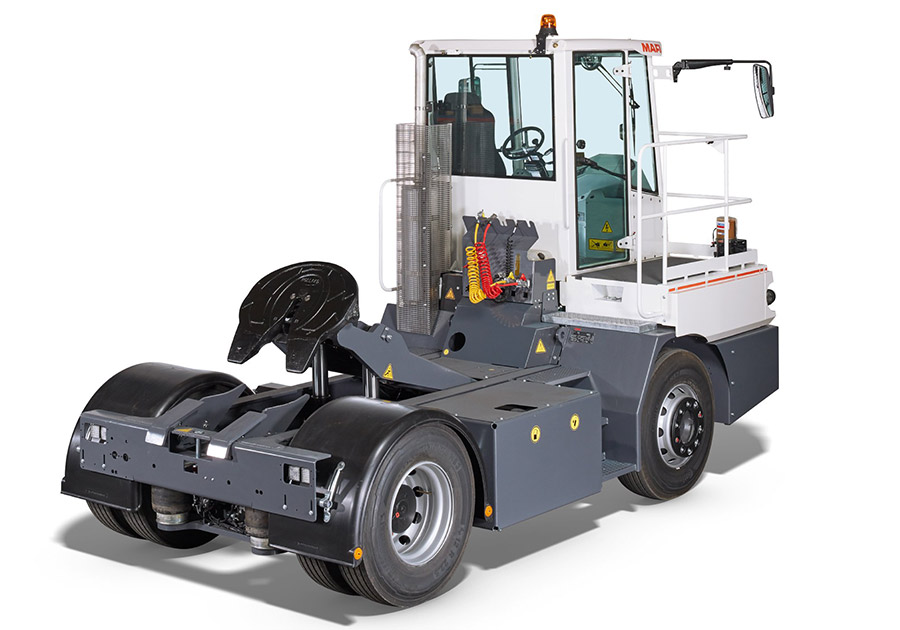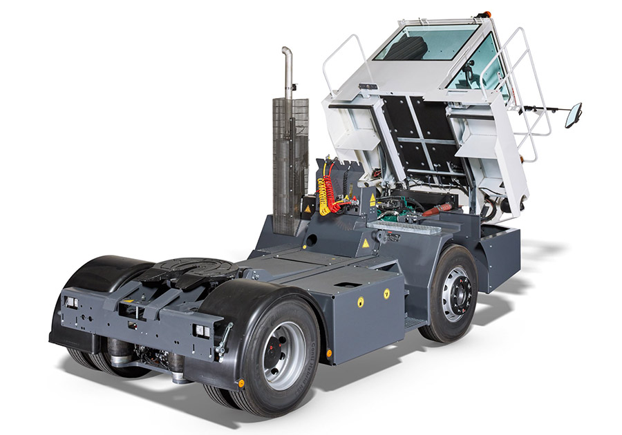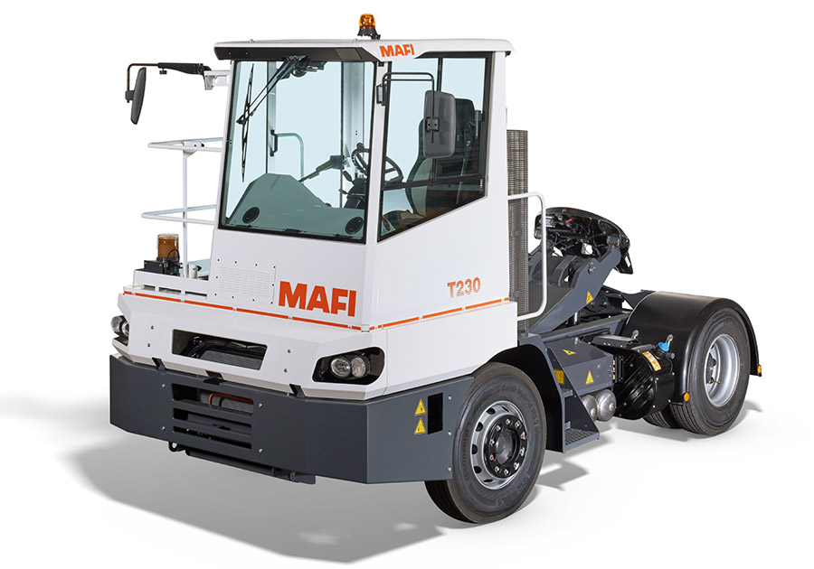 The T 230 terminal tractor was originally designed as a heavy-duty tractor truck for container handling, seaports, container yards, and railways but it has also proven useful as a shunt truck in many industrial and distribution applications that involve moving heavy loads.